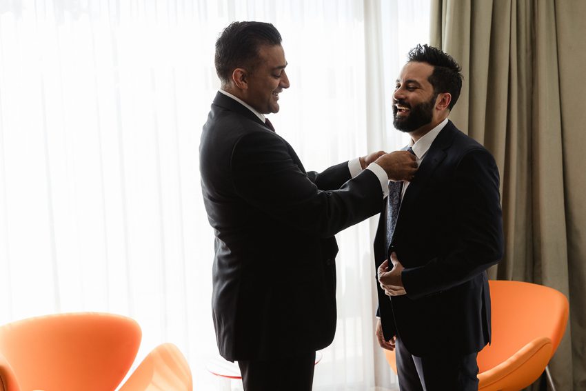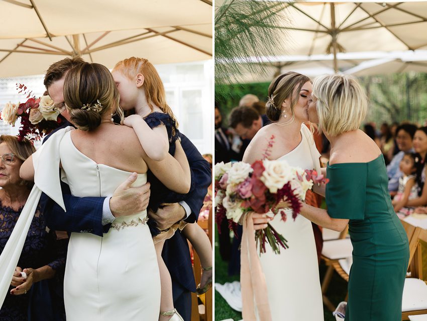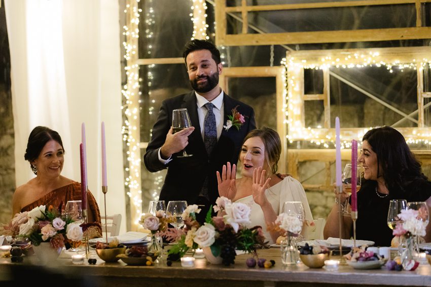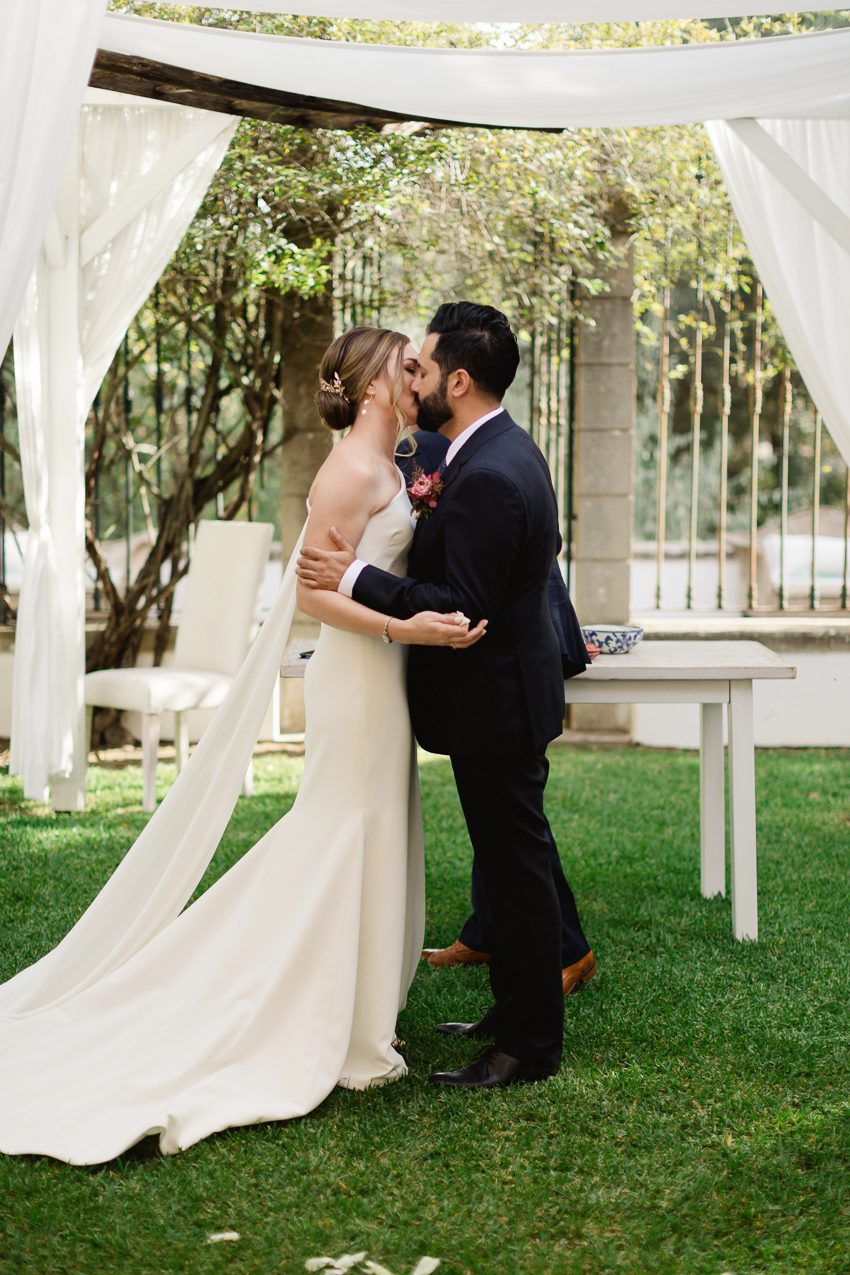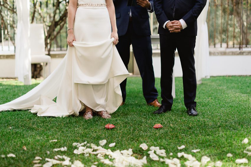 It was an interfaith ceremony, with a ring warming ceremony where each guest blessed the wedding bands. They included an Ismaili tradition, Koba Kobi, where they raced to find the wedding bands in a bowl of rice, meant to encourage a life of happiness, laughter and fun. They closed the ceremony with the Sapatia tradition, where stepping on and breaking clay pots filled with symbols of health, happiness and love, wards off evil spirits with the myth that the spouse to break it first rules the household.