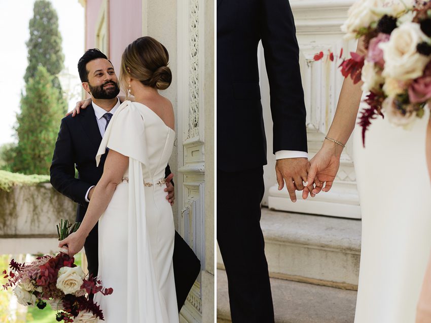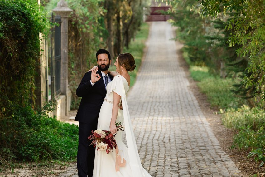 In the Algarve they held a welcome party at Palacio De Estoi, a historical palace in the heart of the Algarve, and the wedding day at Os Agostos, a converted olive press farm nestled in the hills of Loule.