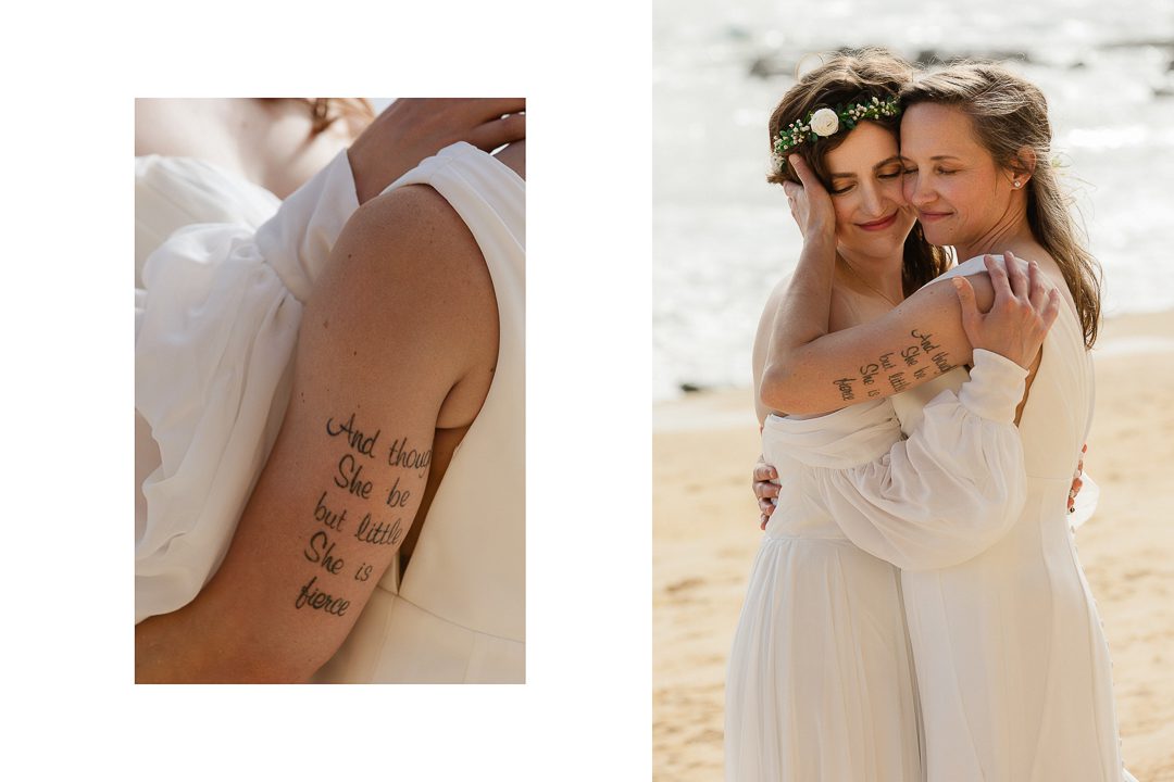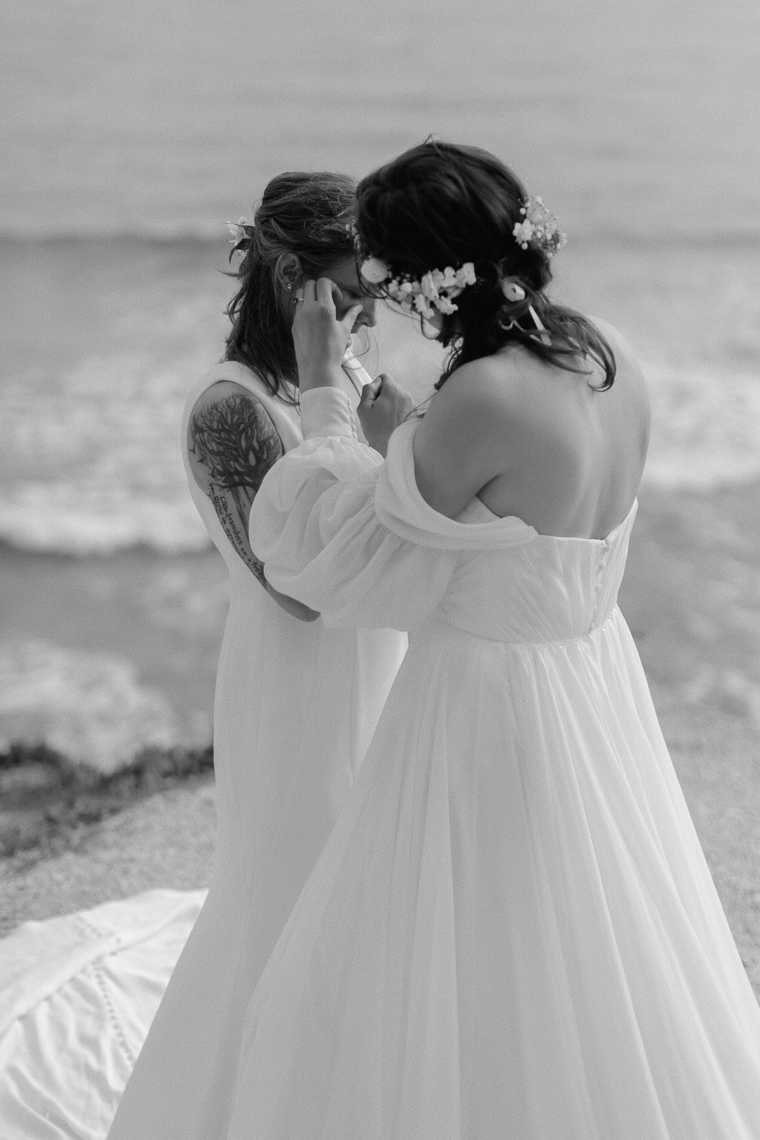 Against the backdrop of golden sands and emerald waters, they celebrated their love in an intimate clifftop ceremony. Their ceremony was simple and romantic, focusing on the vows they wrote for each other, capturing the essence of their journey together.