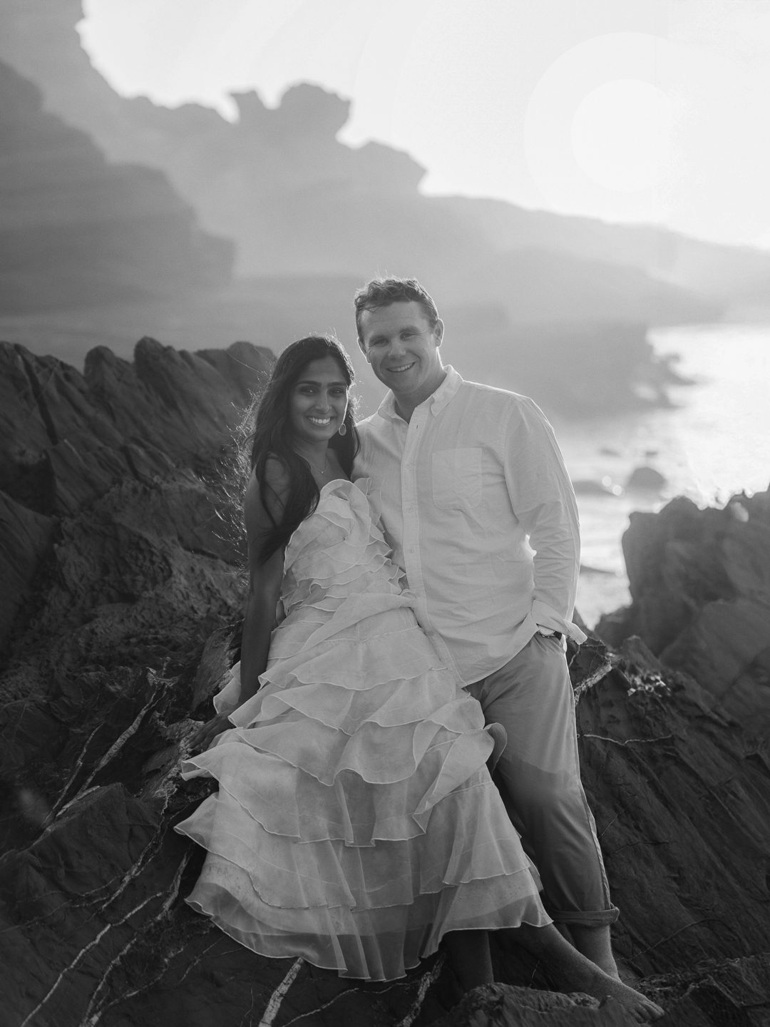 Eesha wore a ruffled pink dress, a softness that perfectly complimented the rugged rock formations, and the rippling wild ocean.